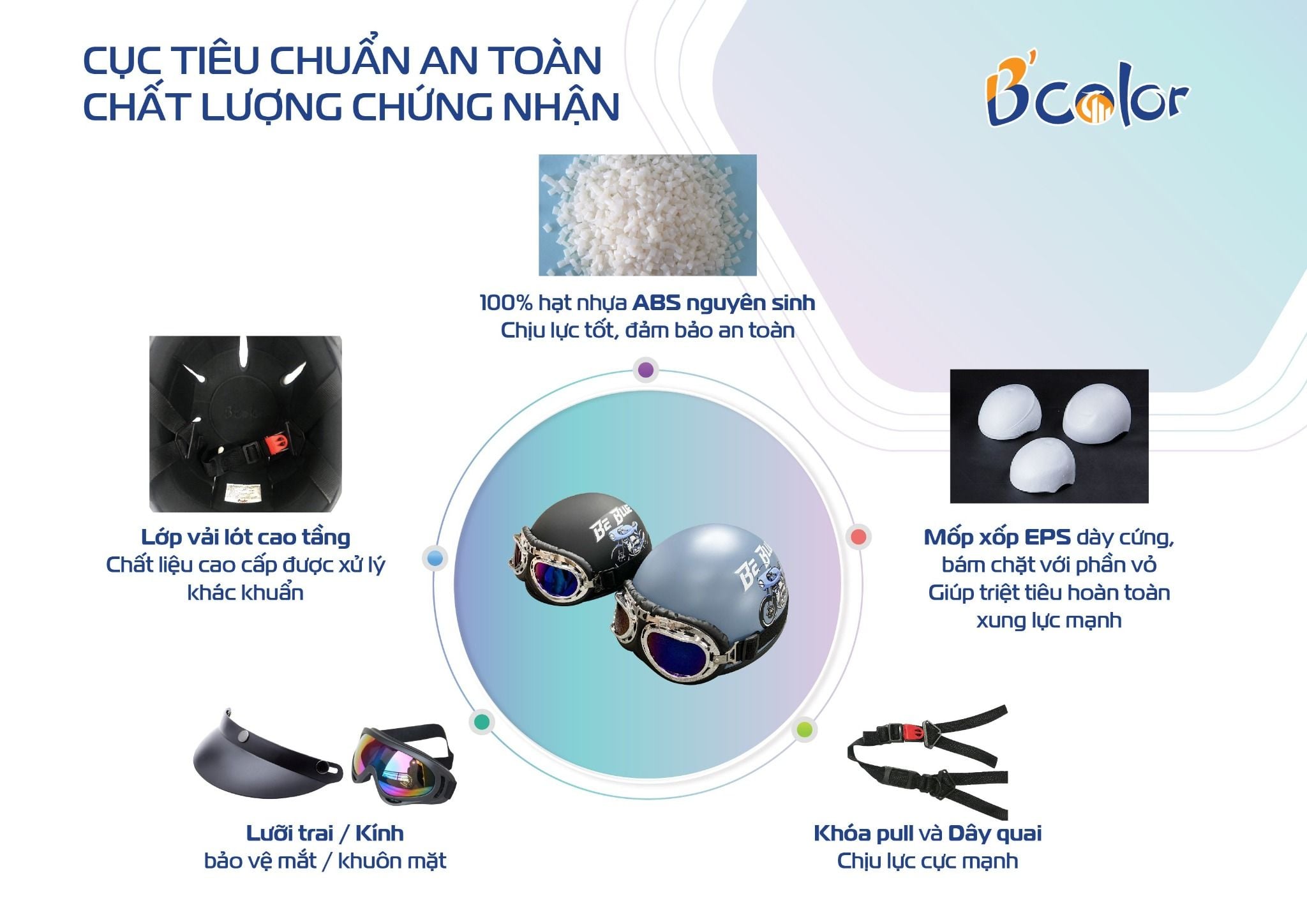 Chất lượng mũ: Lõi xốp cứng đảm bảo an toàn.